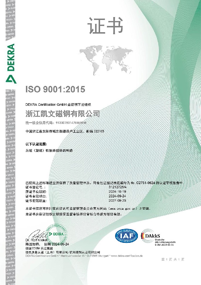 本公司國家高新技術企業,是集科研、生產、銷售為一體的永磁鐵氧體磁性材料專業生產廠家。 公司自主研發(fā)生產的永磁鐵氧體超大、超薄、超小瓦形、矩形、環(huán)形磁體、高電阻磁體、高穩(wěn)定、抗干擾、低溫度系數磁體、高磁晶各向異性場磁體等,正批量應用與變頻壓縮機、汽車電機、風力發(fā)電機、傳感器及音響、傳動等領域。 公司擁有國內外先進的自動化、智能化制造永磁鐵氧體磁體生產線,充分運用了“機器換人”、ERP、機聯網技術,實現了產品的高技術、高質量、高效率生產。具有年產20000噸鐵氧體預燒料和20000噸產品約3000多種規(guī)格產品的生產能力。所生產的產品30%以上達到國際先進水平,50%以上國內領先水平。